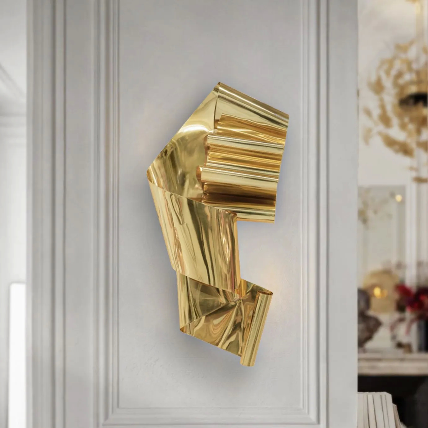 Inspired by the wildly winding anxious mind of a woman suspecting something is off-kilter, the oversized ribbon-like Neurotica sconce, alone, in a pair or down a hall, serves as powerful art and lighting.